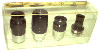 I have found that having the eyepieces and filters near at hand while I am out observing, to be a real time and effort saver. So I made a Plexiglas case to mount on the side of my Dobsonian to keep everything handy and out of the elements. And realizing that everyone's needs are different I will custom build your case to meet your specific needs. Let's work out the details with e-mail. Not recommended as a transport case on bumpy roads !! |